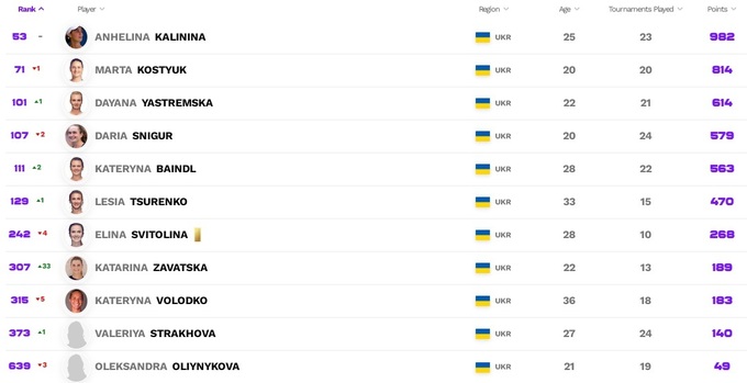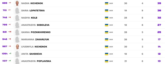 Что касается украинок, то немного подтянулась Катарина Завацкая, которая как раз не доиграла полуфинал против Ван Сиюй в Японии. У остальных изменения небольшие. Даяна Ястремская находится на границе первой и второй сотни.