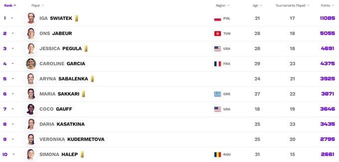 Также 12 позиций добавила и китаянка Ван Сиюй, которая выиграла 60-тысячник в Токио.