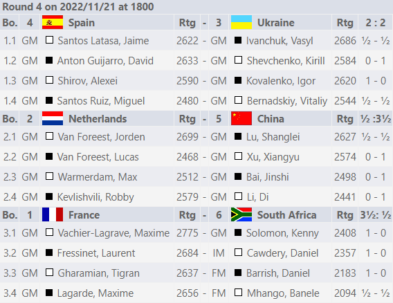В 4-м туре командного чемпионата мира Украина сыграла вничью с Испанией