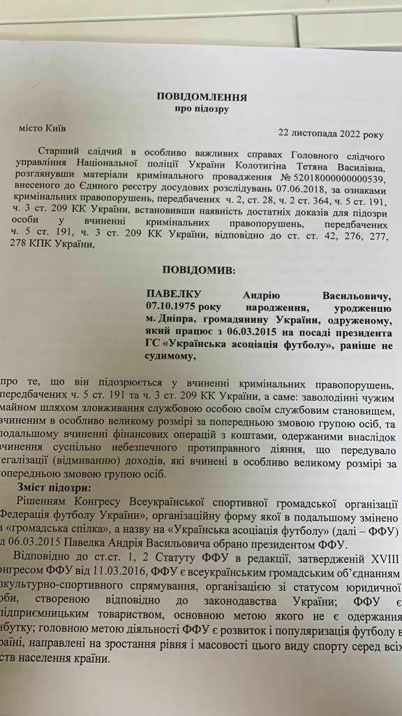 Источник: Павелко подписал врученное ему Генпрокуратурой подозрение