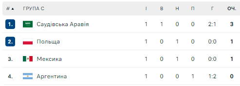 В группе C на чемпионате мира 2022 после первого тура неожиданно лидирует сборная Саудовской Аравии.