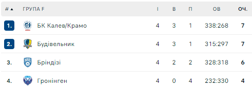 Кубок Европы FIBA. Группа F
