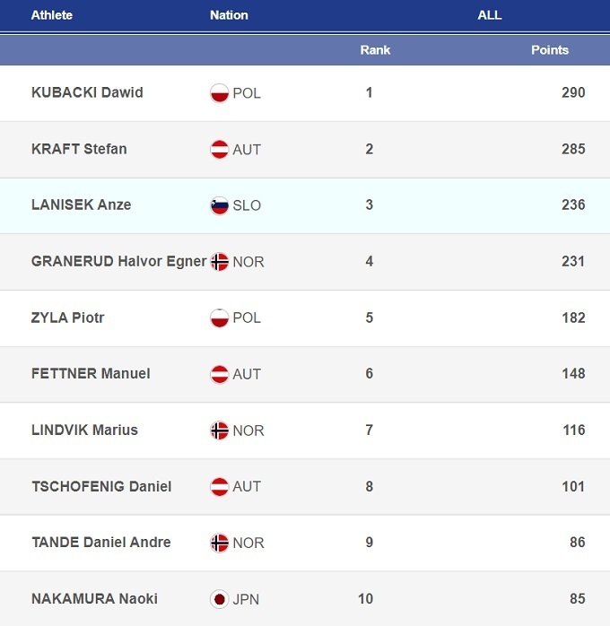 В субботу Крафт стал вторым вслед за Ланишеком – очень удачный уик-энд для австрийца, который идет вторым в общем зачете. А вот Гранеруд в субботу финишировал пятым, после чего получил дисквалификацию за слишком просторный костюм.