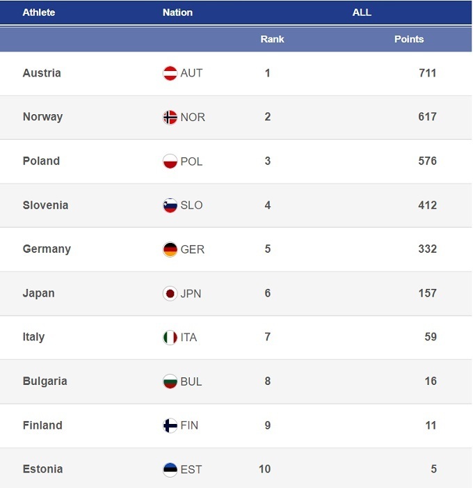 Тотальный провал ждал в субботу сборную Японии: во вторую попытку не пробился НИКТО, даже Рёю Кобаяси, который и в воскресенье выступил неудачно – 23-е место. Спасти этап для японцев сумел Наоки Накамура: он стал третьим в воскресенье. В первой попытке ему явно повезло с ветровыми условиями, и многие ждали, что во втором раунде он отступит, но не тут-то было. Первый в карьере подиум на Кубке мира для 26-летнего японца.