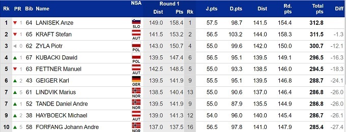 Словенский прыгун Анже Ланишек выиграл личные соревнования на этапе Кубка мира в финской Руке. Он опередил австрийца Штефана Крафта и поляка Пётра Жилу.