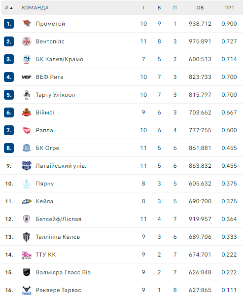 «Прометей» после 10 матчей имеет 9 побед и 1 поражение и уверенно лидирует в турнирной таблице ЛЭБЛ.
