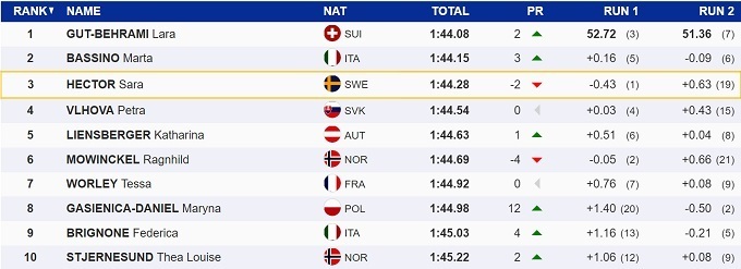 Швейцарская горнолыжница Лара Гут-Бехрами выиграла гигантский слалом на этапе Кубка мира в американском Киллингтоне. Она всего на 0,07 секунды опередила итальянку Марту Бассино, топ-3 замкнула действующая олимпийская чемпионка в гигантском слаломе, шведка Сара Хектор.