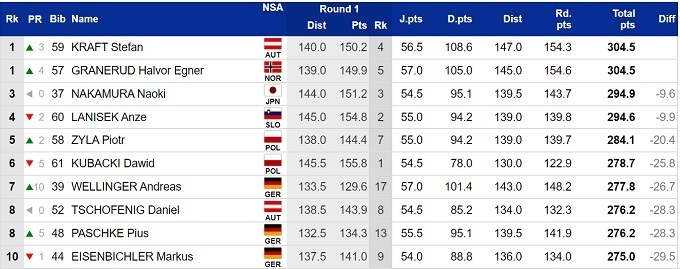 Второй личный старт на этапе Кубка мира по прыжкам на лыжах с трамплина в финской Руке завершился двойной победой. Первое место разделили австриец Штефан Крафт и норвежец Халвор Эгнер Гранеруд. Топ-3 замкнул японец Наоки Накамура.