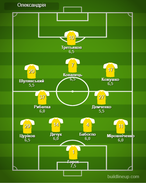 «Александрия»: Горох – Бабогло, Третьяков (Кобзарь, 41), Ковалец (Волошин, 84), Мирошниченко, Дячук, Кожушко (Скорко, 84), Шулянский (Авагимян, 15), Демченко, Цуриков, Рыбалка.