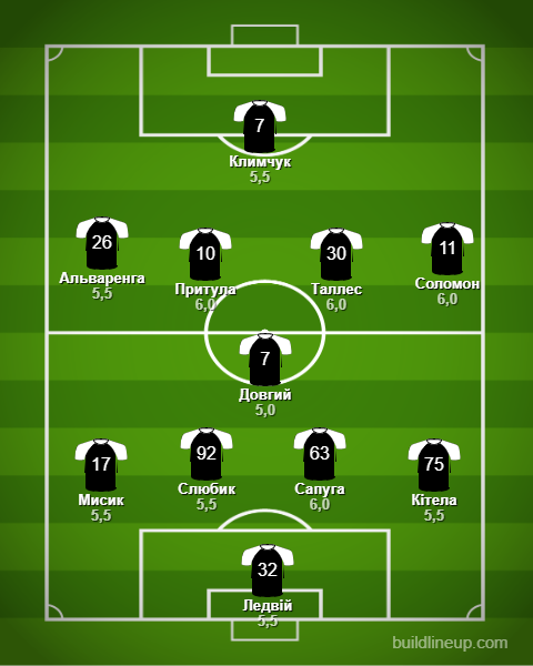 Дячук, 42, Ковалец, 45+1, Рыбалка, 90+5 – Климчук, 12, 59 Альваренга, 45, Сапуга, 45+1, Кителла, 48, Довгий, 90+1, Мисик, 90+5, Рунич, 90+5