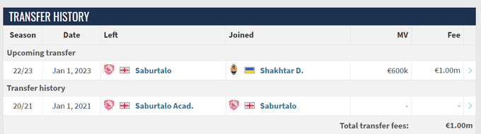 Официально украинский и грузинский клубы предпочли не разглашать стоимость трансфера игрока, но по данным портала Transfermarkt, «горняки» заплатили за защитника 1 миллион евро.