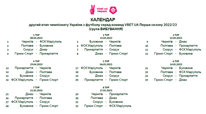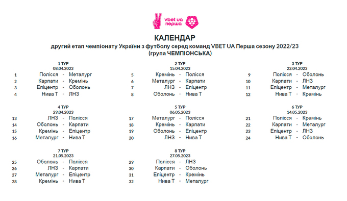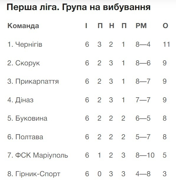 Напомним, что согласно регламенту по итогам соревнований два победителя чемпионской группы напрямую выходят в УПЛ, а команды, занявшие третье и четвертое места, будут играть в плей-офф с командами, которые займут 14-е и 13-е места в УПЛ соответственно.