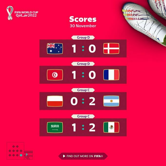 30 ноября на чемпионате мира 2022 в Катаре состоялись матчи третьего тура в группах C и D.