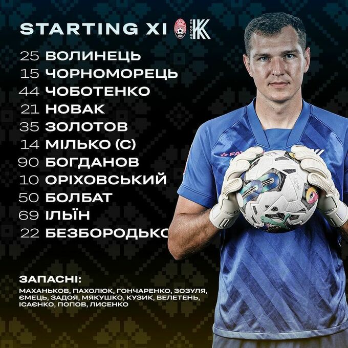 Запасные: Маханьков, Пахолюк, Гончаренко, Зозуля, Емец, Задоя, Мякушко, Кузык, Велетень, Исаенко, Попов, Лысенко.
