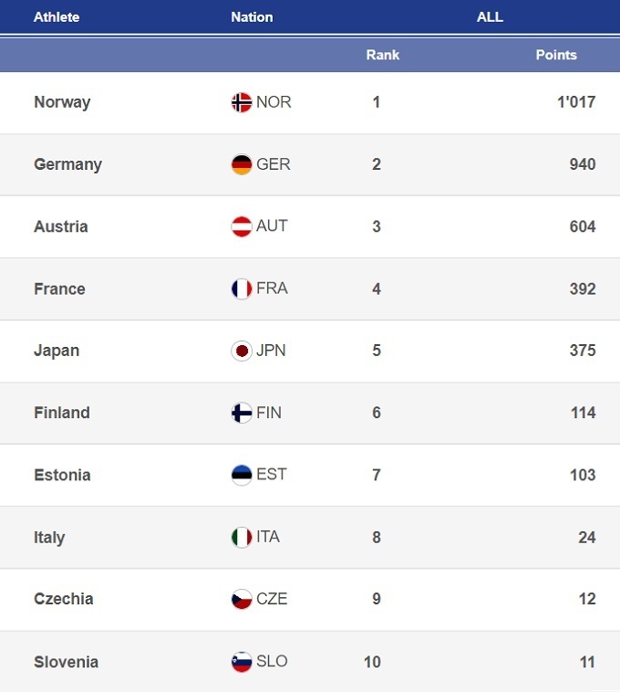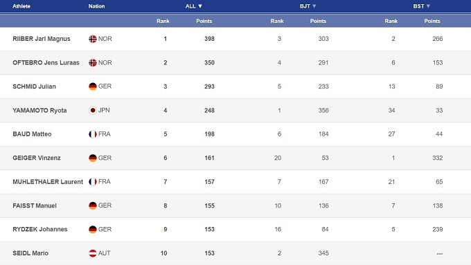 А вот у сборной Японии проблема: кроме Рёты Ямамото сейчас бороться за высокие места не способен никто – легендарный Акито Ватабе сейчас в тяжелом кризисе. Сам Ямамото в субботу замкнул топ-6, выдав довольно неплохой финиш. В воскресенье Рёта занял лишь 14-е место из-за неудачи на трамплине. Тренер сборной Японии запросил для лидера своей команды понижение стартовых ворот, однако Ямамото не сумел долететь до 95% от мощности трамплина (133 метра), чтоб получить компенсацию за сокращение разгона.