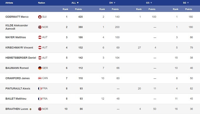 Этап в Бивер Крике ознаменовался продолжением дуэли между Александером Омодтом Килде и Марко Одерматтом. В США норвежец одержал две победы, а швейцарец дважды финишировал вторым на небольшом отставании. В общем зачете Килде отстает теперь всего на 40 очков, но у Одерматта есть козырь в виде гиганта, в котором норвежец после травмы пока что не может вернуться на уровень регулярных попаданий в топ-6.