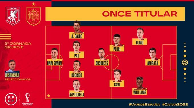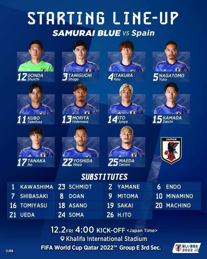 The starting XIs for #JPN and #ESP #FIFAWorldCup | #Qatar2022