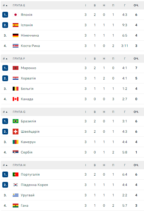2 декабря на чемпионате мира 2022 в Катаре состоялись последние матчи третьего тура, в нижних группах G и H.