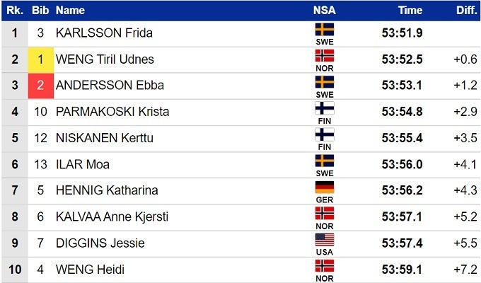 Второй финишировала лидер Кубка мира Тириль Уднес Венг. Топ-3 замкнула еще одна шведка – Эбба Андерссон.