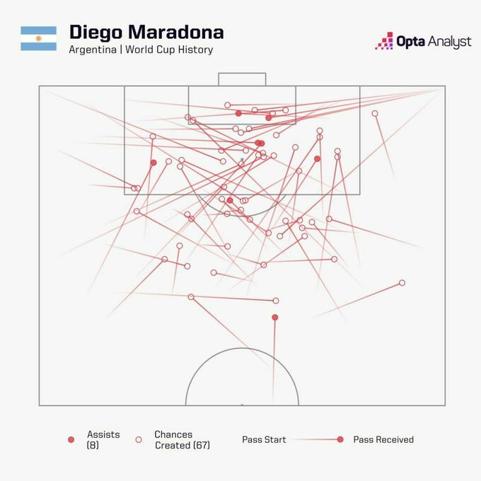 При этом у Марадоны на счету восемь результативных передач, а у Месси их только шесть.