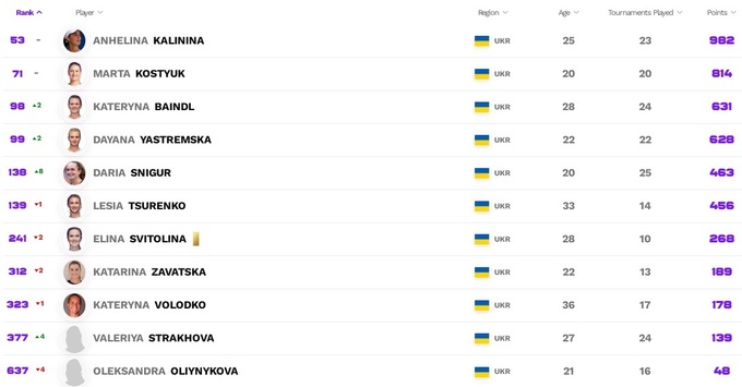 Среди украинок, которые не слишком удачно сыграли в Андорре, стоит отметить небольшой прогресс Катерины Байндл, Даяны Ястремской и Дарьи Снигур. Даяна снова в первой сотне, но на 99-м месте. Также несколько десятков позиций отыграла Дарья Лопатецкая.