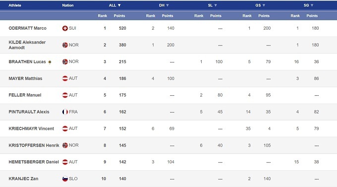 Снова сильно начал сезон Кристоффер Якобсен, который занял четвертое место. Год назад он начал сезон вообще с двух подиумов, но после этого целых 7 раз подряд сходил с дистанции. Из сенсаций слалома в Валь д’Изере отметим Тобиаса Кастлунгера: 23-летний итальянец во второй попытке прорвался с 26-го места на 10-е. С девятой попытки Кастлунгер набрал свои первые очки на Кубке мира, и сразу очень солидные.