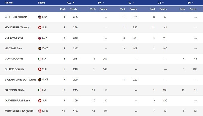 Разочаровала Лара Гут-Бехрами, которая после победы в Киллингтоне стала лишь седьмой. Похоже, в число претендентов на БХГ ее записали слишком рано. Тем более, что и в скоростных видах швейцарка пока не на том уровне, чтобы реально бороться за общий зачет. Очередной довольно слабый гигант выдала Микаэла Шиффрин, которая лишь замкнула топ-6. Это, конечно, лучше, чем 13-е место в Киллингтоне, но с точки зрения генеральной классификации такого уровня результатов может быть недостаточно. В воскресном слаломе Шиффрин стала второй.