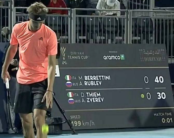 В пятницу, 9 декабря, состоялся парный матч на выставочном турнире в Саудовской Аравии между тандемами Александр Зверев (Германия) / Доминик Тим (Австрия) – Маттео Берреттини (Италия) / Андрей Рублев.