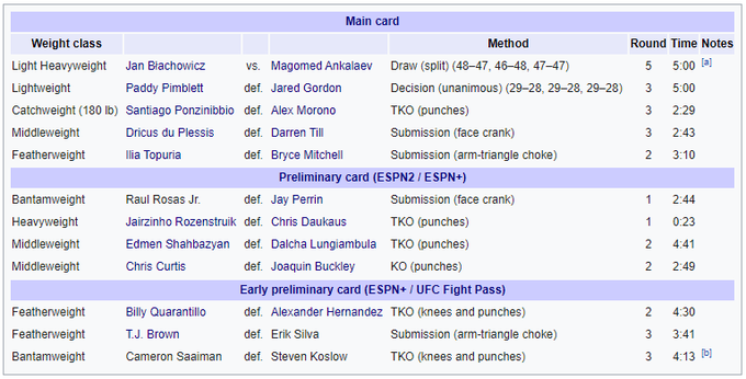 По итогам пяти раундов поединок завершился вничью, что является редким в MMA результатом. Пояс чемпиона UFC в полутяжелом весе остался вакантным.