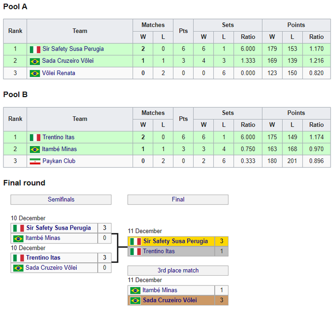 В финале встретились две итальянских команды, и «Перуджа» нанесла поражение «Трентино» в четырех партиях (3:1).