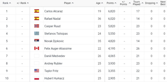 На прошлой неделе у мужчин кроме большого выставочного турнира в Саудовской Аравии проходили лишь 15-тысячники ITF, поэтому изменения в рейтинге если и были, то незначительные.