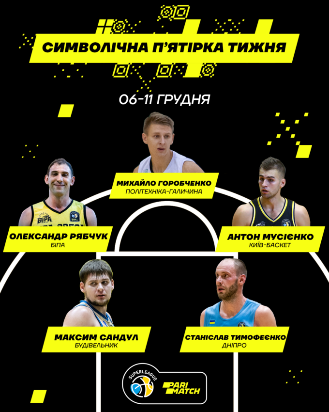 Помимо Максима Сандула, в символическую пятерку недели также вошли Михаил Горобченко («Политехника-Галичина»), Александр Рябчук (БИПА), Антон Мусиенко («Киев-Баскет») и Станислав Тимофеенко («Днепр»).