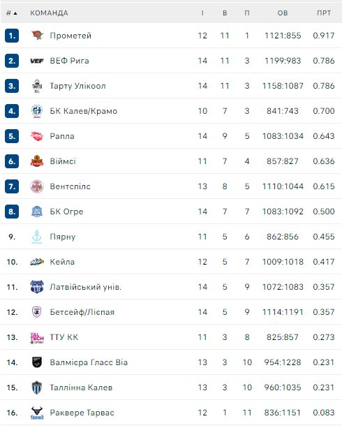 «Прометей» после 12 матчей имеет 11 побед и 1 поражение и уверенно лидирует в турнирной таблице ЛЭБЛ.