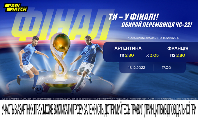 18 декабря на чемпионате мира в Катаре состоится последний поединок. В финальном матче за титул победителя Мундиаля на стадионе «Лусаил» сойдутся действующий чемпион мира – сборная Франции – и чемпион Южной Америки – сборная Аргентины. Начало встречи – в 17.00 по киевскому времени.