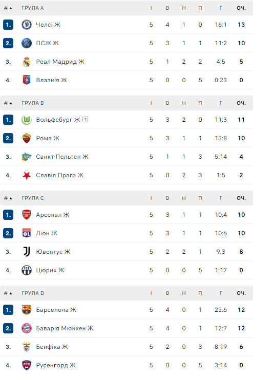 5-й тур женской Лиги чемпионов. Определены 6 из 8 четверьфиналистов