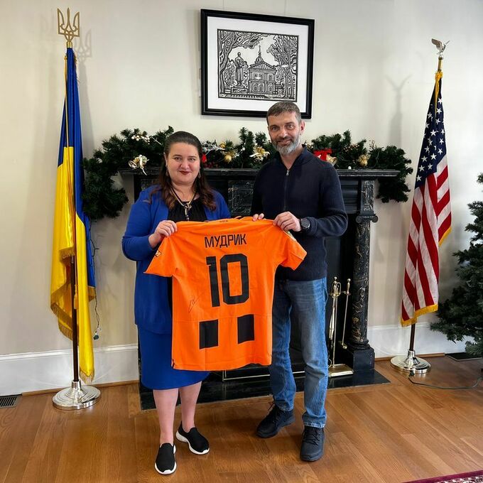 ФОТО. Защитник Азовстали подарил послу Украины в США футболку Мудрика