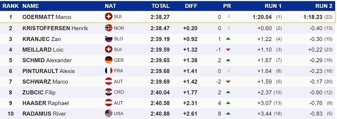 Вторым, как и вчера, стал норвежец Хенрик Кристофферсен, топ-3 замкнул словенец Жан Краньец.