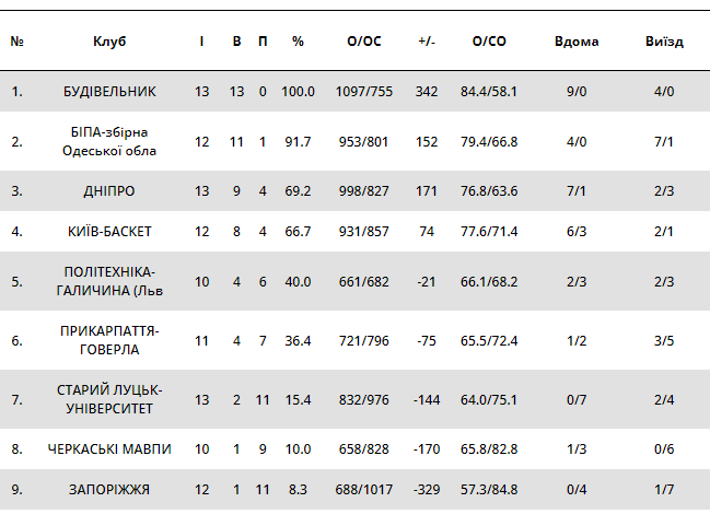 Будивельник: Конев 20 + 9 подборов + 3 передачи, Кольченко 16 + 3 перехвата – 4 потери, Никитин 11 + 5 подборов, Сандул 7, Буренко 3 + 6 передач – старт, Сафонов 14, Приймак 6 + 6 подборов + 4 передачи, Хохоник 5 , Зайцев 2, Кабанов 0