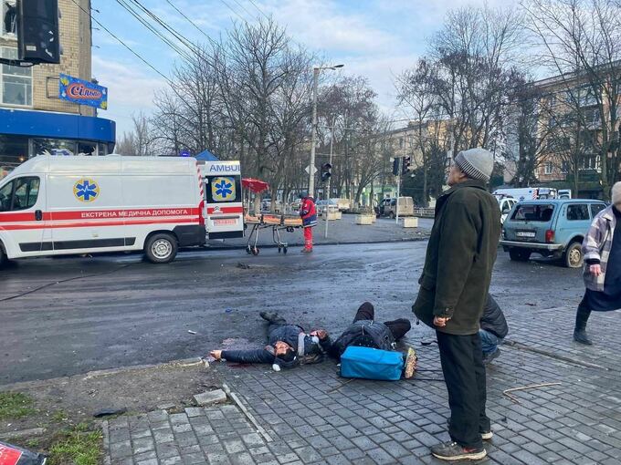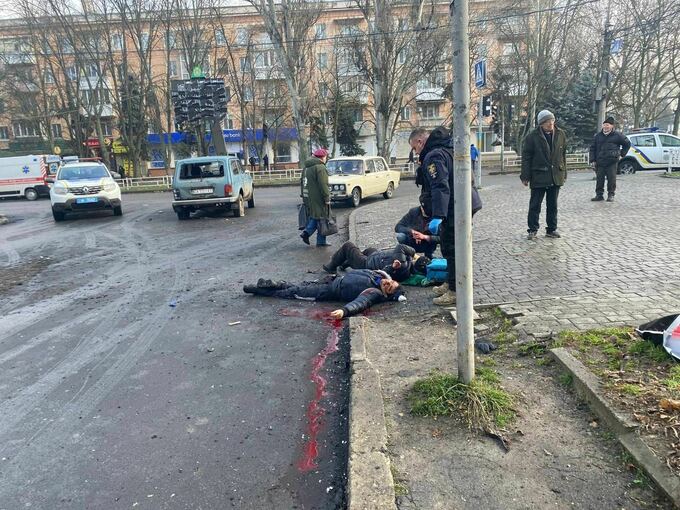 ФОТО 18+. Рашисты обстреляли центр Херсона, много раненых, есть погибшие