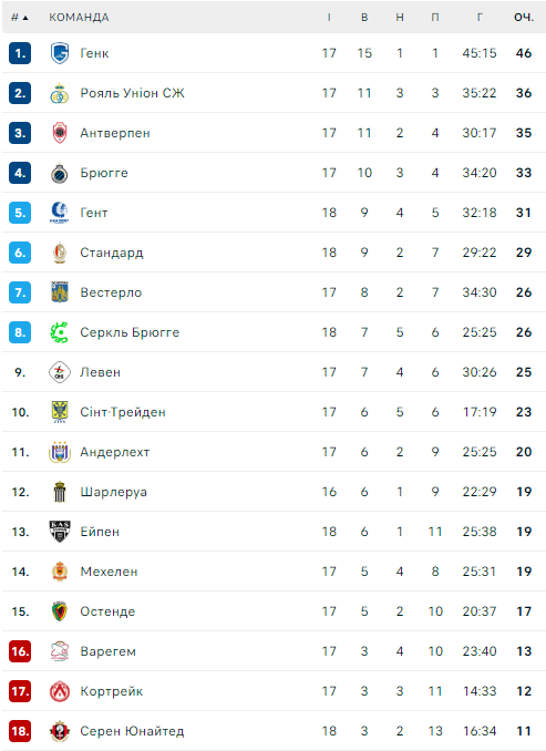 На старте 18-го тура выиграл только «Эйпен», а в центральной встрече дня «Гент» и «Стандард» разошлись миром (0:0).