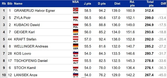 Норвежский прыгун Халвор Эгнер Гранеруд выиграл стартовый этап Турне четырех трамплинов 2022/2023 в немецком Оберстдорфе. Он на 13,4 балла опередил поляка Пётра Жилу. Топ-3 замкнул лидер Кубка мира Давид Кубацки, который в борьбе за подиум на 1,3 балла опередил хозяина соревнований, Карла Гайгера.