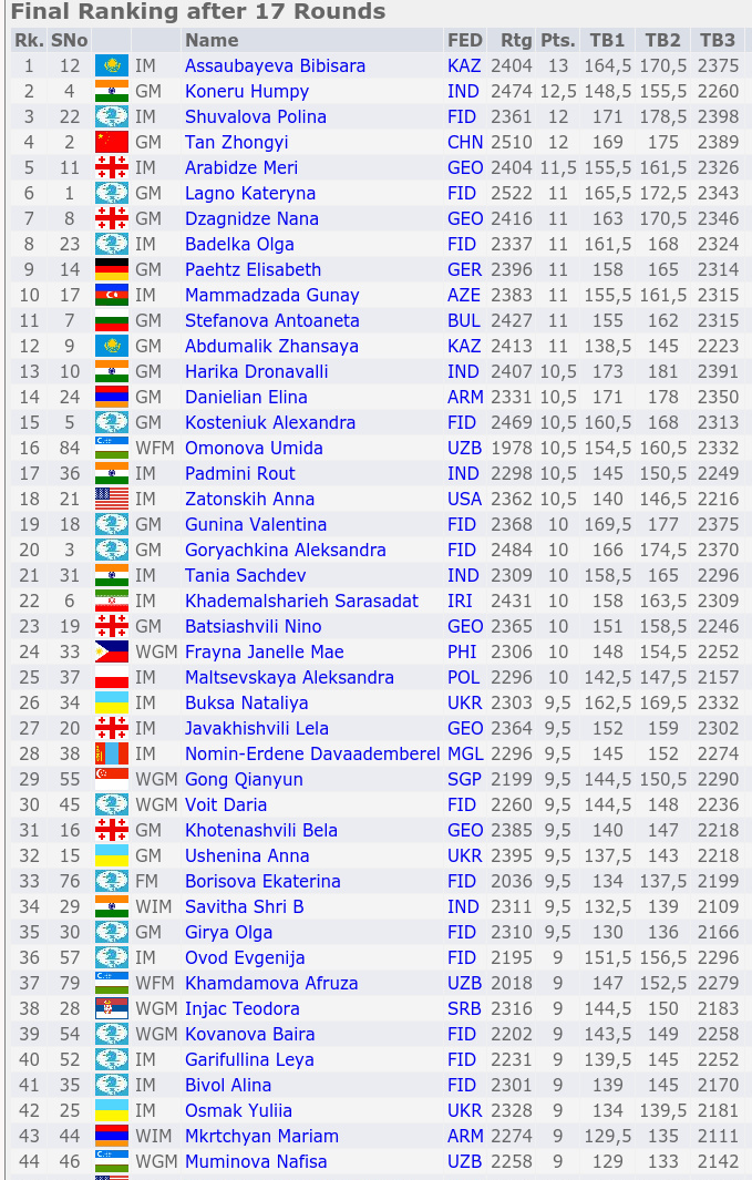 - 1. Бибисара Асаубаева (Казахстан) – 13 очков из 17