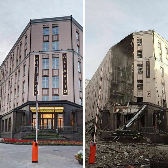 «российский новый год за праздничным столом – это кадры разбитых в Украине жилых домов, новости о погибшем человеке из-за обломка ракеты в Соломенском районе Киева. Вот так они видят «праздники». Террористы и убийцы! Разбитая гостиница в сердце столицы – это их радость за праздничным столом.