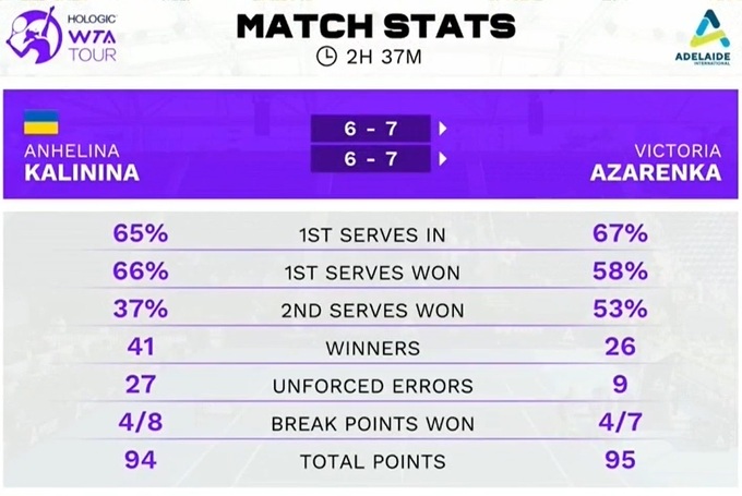 Ангелина Калинина (Украина) – Виктория Азаренко – 6:7(9), 6:7(5)