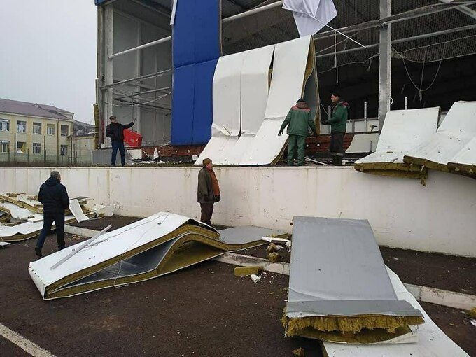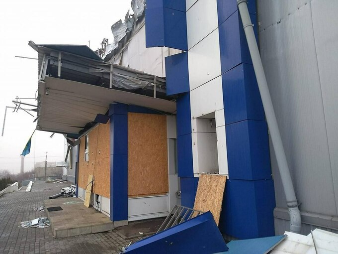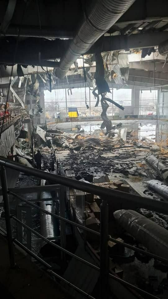 Поврежденная российским ударом ледовая арена в Дружковке была складом гуманитарной помощи для местного населения.