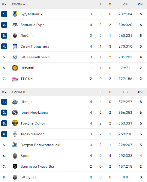 Киевская команда выиграла у эстонского коллектива «Талтех» со счетом 73:59. Самым результативным игроком «Будивельника» стал Джерай Грант, набравший 32 очка.