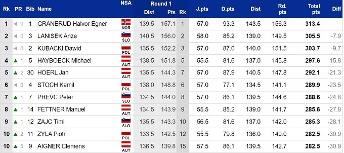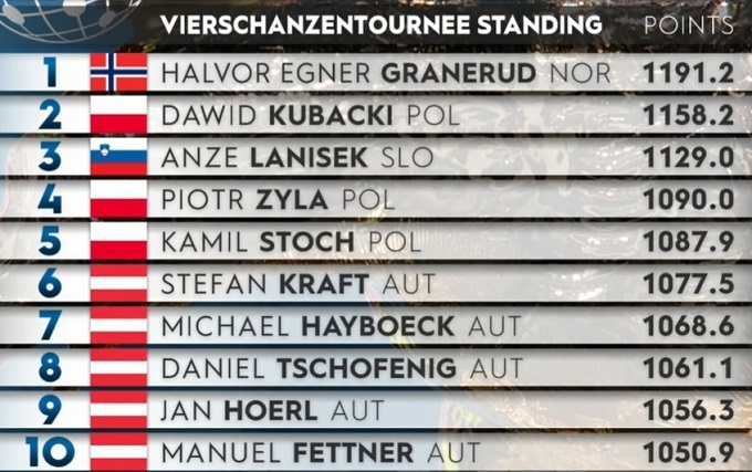 Он опередил словенца Анже Ланишека и поляка Давида Кубацки. Эти же два прыгуна составили Гранеруду компанию и на подиуме общего зачета Турне.