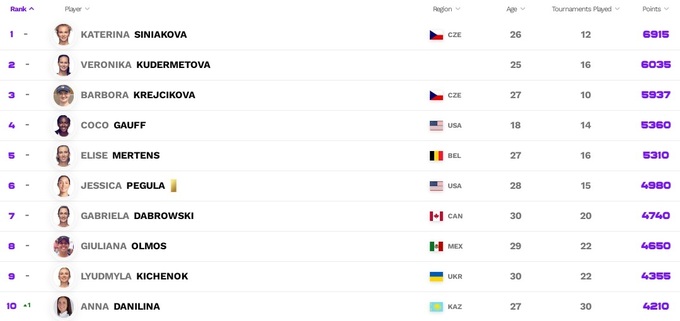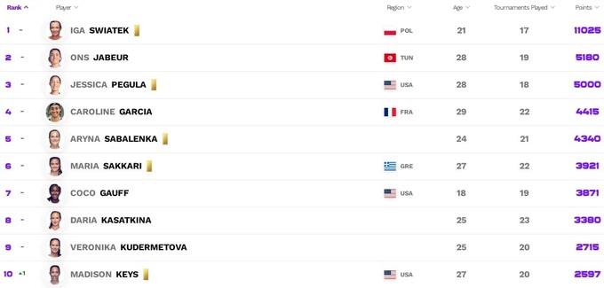 На прошлой неделе женщины сыграли турниры WTA 500 в Аделаиде и WTA 250 в Окленде. Также получили очки и спортсменки, которые выступили на командных соревнованиях под названием United Cup. К примеру, Мэдисон Киз таким образом вернулась в первую десятку мирового рейтинга, заменив там Симону Халеп.