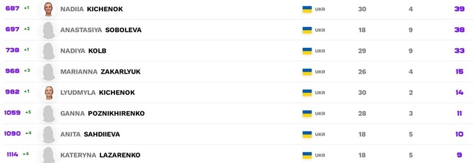 Людмила Киченок сохранила девятую строчку в парном рейтинге. Марта Костюк – 38-я, Надежда Киченок – 84-я.