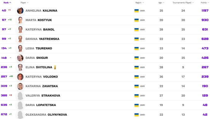 Что касается украинок, то хорошее выступление Марты Костюк в Аделаиде позволило ей подняться на 12 строчек. Также немного подтянулись Катерина Байндл, Даяна Ястремская и Леся Цуренко. Ангелина Калинина одну позицию потеряла. Катерина Володько, которая выиграла титул на 40-тысячнике ITF, вернулась в третью сотню.